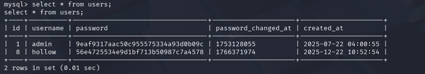 发现用户数据表里存在admin用户的password哈希与password_changed_at。