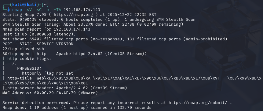 扫描靶机ip的端口与服务(发现80端口有http服务)