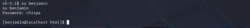 通过信息收集,发现一个系统用户为benjamin,通过上面爆破出的密码尝试登录,发现登录成功。